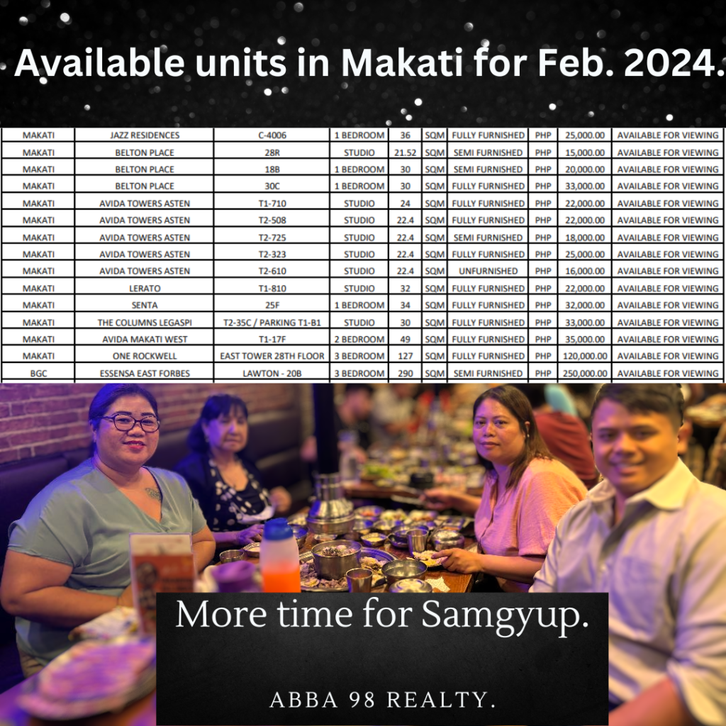 Available units for rent in Makati City.