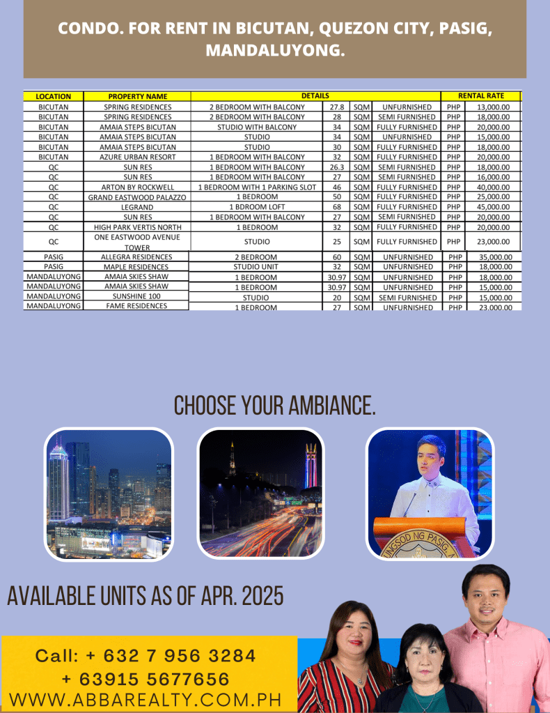 It is a seesaw event with the rentals in the Philippines. In the past 3 months, we have explained to our landlords about the state of our industry. Finally they are buying the idea of renting a property to test out the market. We have shifted from foreign workers to returning empty nesters who would like to retire or integrate themselves in our culture. Most of our prospects nowadays choose a location where they are familar with. Usually, these locations are an important part of their past or youth. With that, we bring to you the available properties for rent as of April 2025 from different areas of Manila.