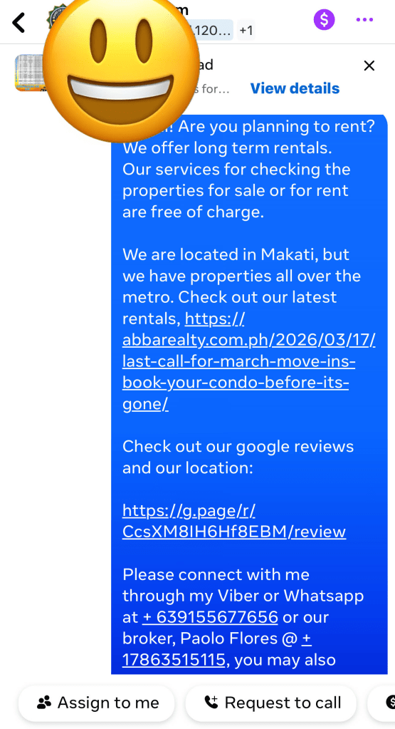 I woke up trying to hold on to a dream that felt vivid. But like most dreams, it slipped away before I can even remember it. Not long after, reality sets in. I start thinking about the listings I’ll be marketing today and the clients I need to respond to, especially those who reached out overnight looking for rental properties around Metro Manila. Implementing this new ad has given us 40% more leads since we ran it. Some prospects are just trolling around… some we’re even asking for money… and few we’re legitimate people who are serious buyers or inquiries and what we can call a ” warm lead. “