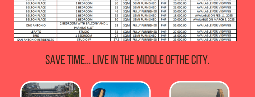 Available units in Quezon City, Mandaluyong, and Pasig as of April 2025. It is a seesaw event with the rentals in the Philippines. In the past 3 months, we have explained to our landlords about the state of our industry. Finally they are buying the idea of renting a property to test out the market. … Continue reading Market report and available condominium units outside of Makati City.